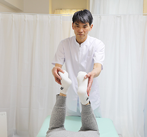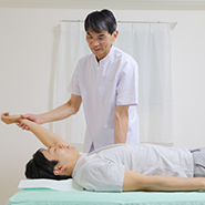 関節を動かして筋肉を緩め身体全体をリラックスさせます。服を着用したままの施術で手技のみです。